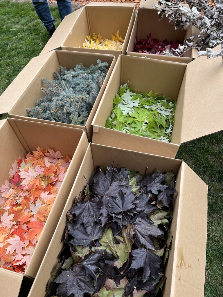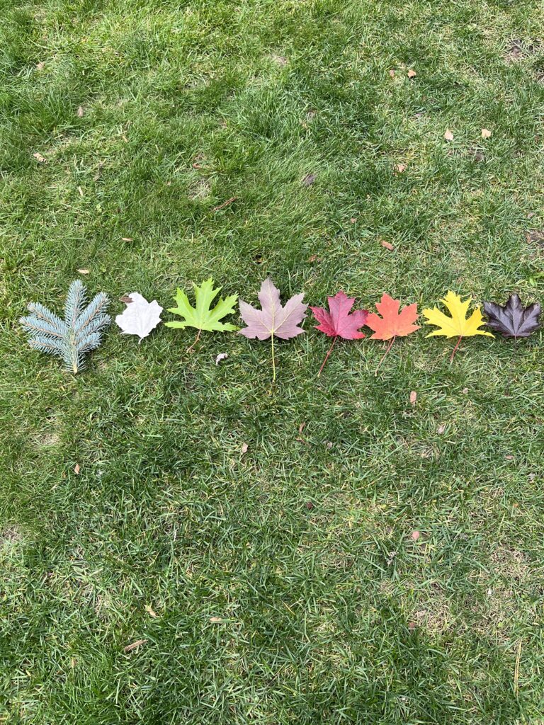 先ずは葉っぱを集めますこの時期しか見れない色とりどりの葉っぱです。