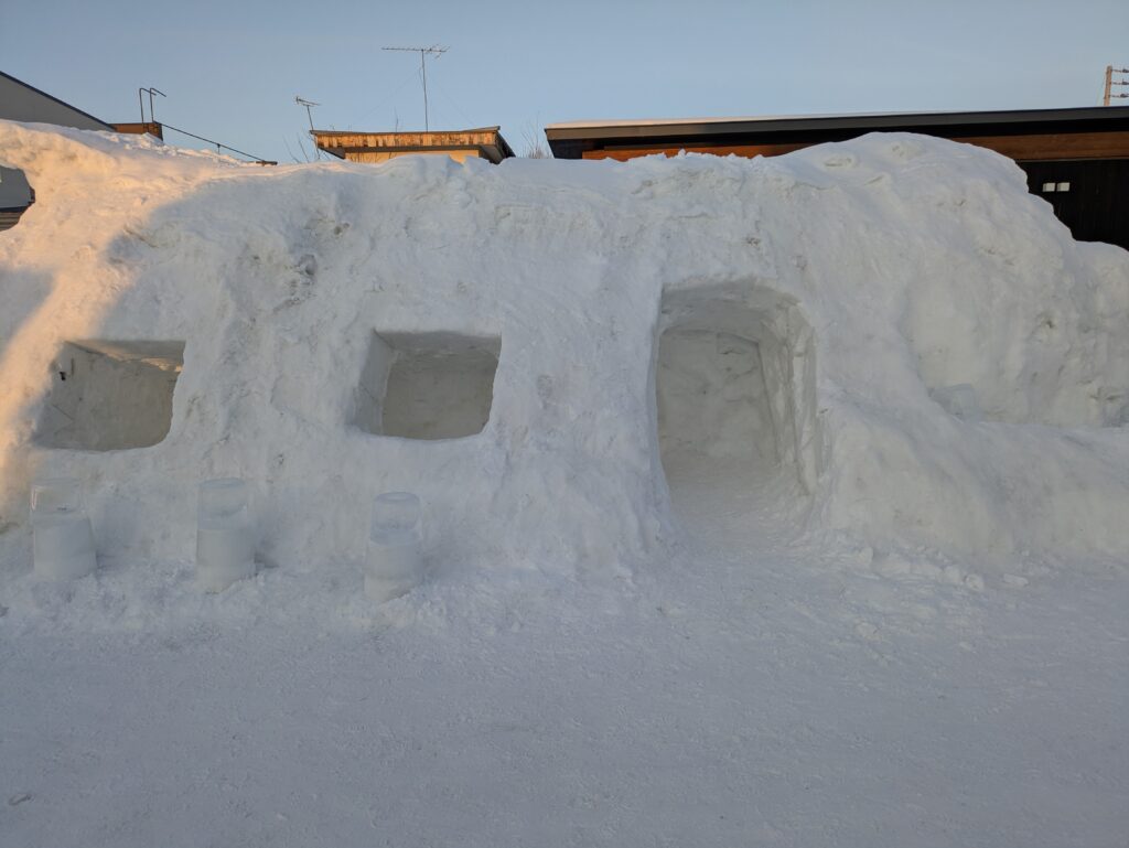 会場には大きなかまくらや、暖を取るためのスペース、主に食べ物を販売している屋台がありました。