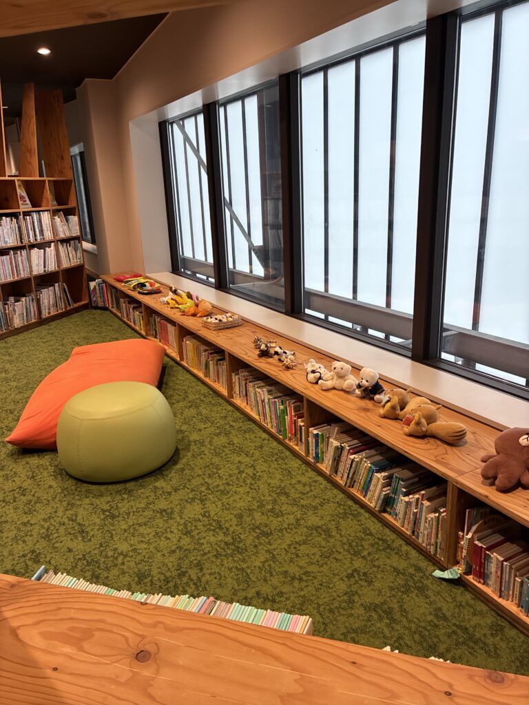 まず階段を上がり目に入ったのは小さい子供たちが靴を脱いで自由に本をみたりできるスペースです!