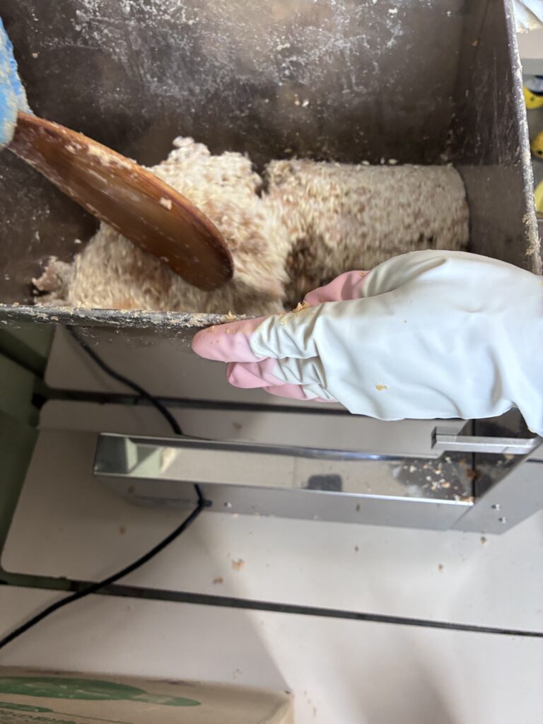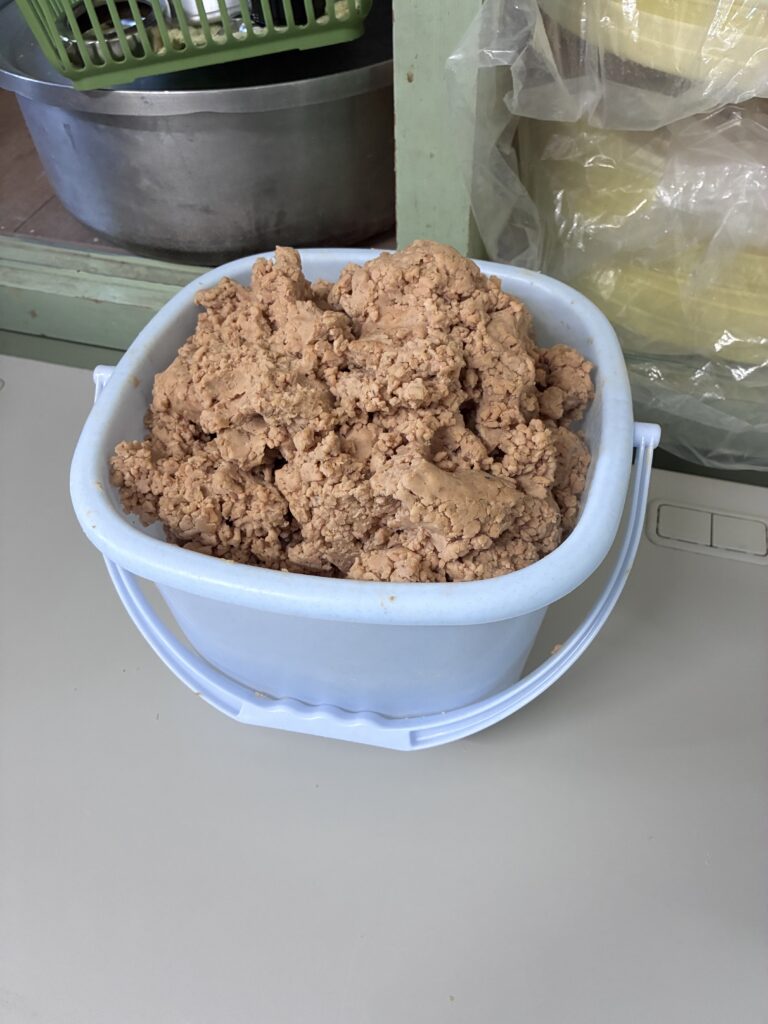 先ほどの大豆に麹とお塩を混ぜている所です