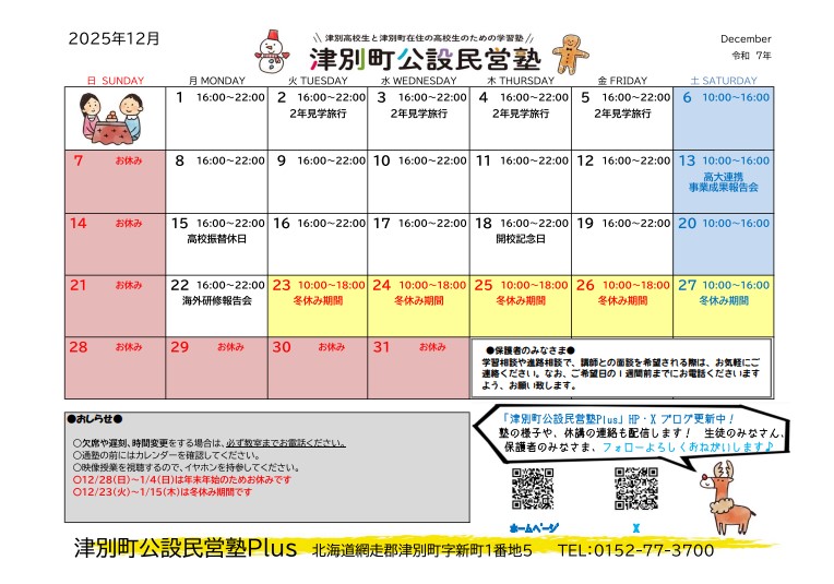 津別町学習塾 Plusは、津別町が開設し、㈱Birth47が運営する公設民営塾です。