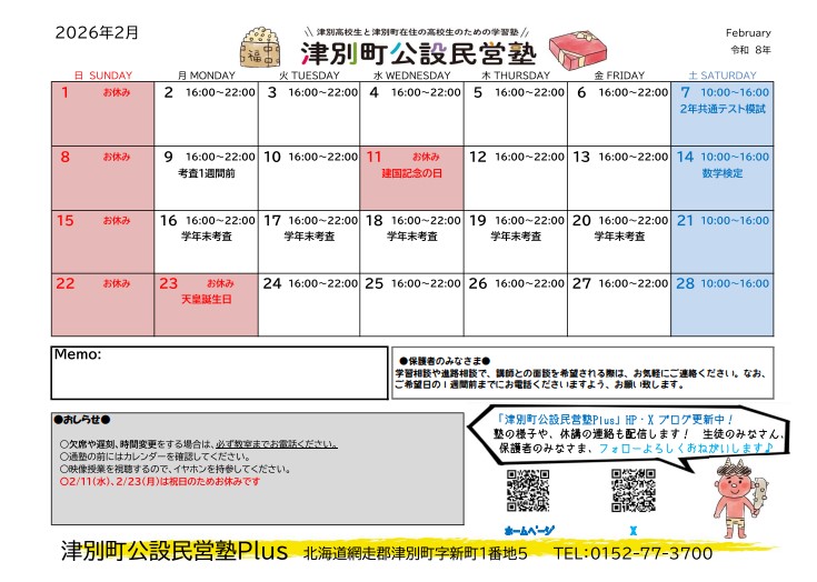 津別町学習塾 Plusは、津別町が開設し、㈱Birth47が運営する公設民営塾です。
